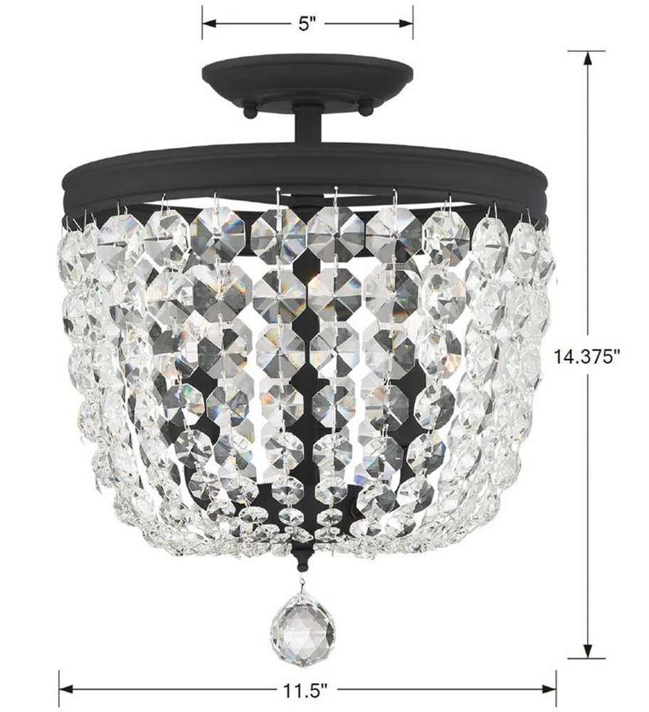 Archer 3 Light Hand Cut Crystal Black Forged Semi Flush Mount