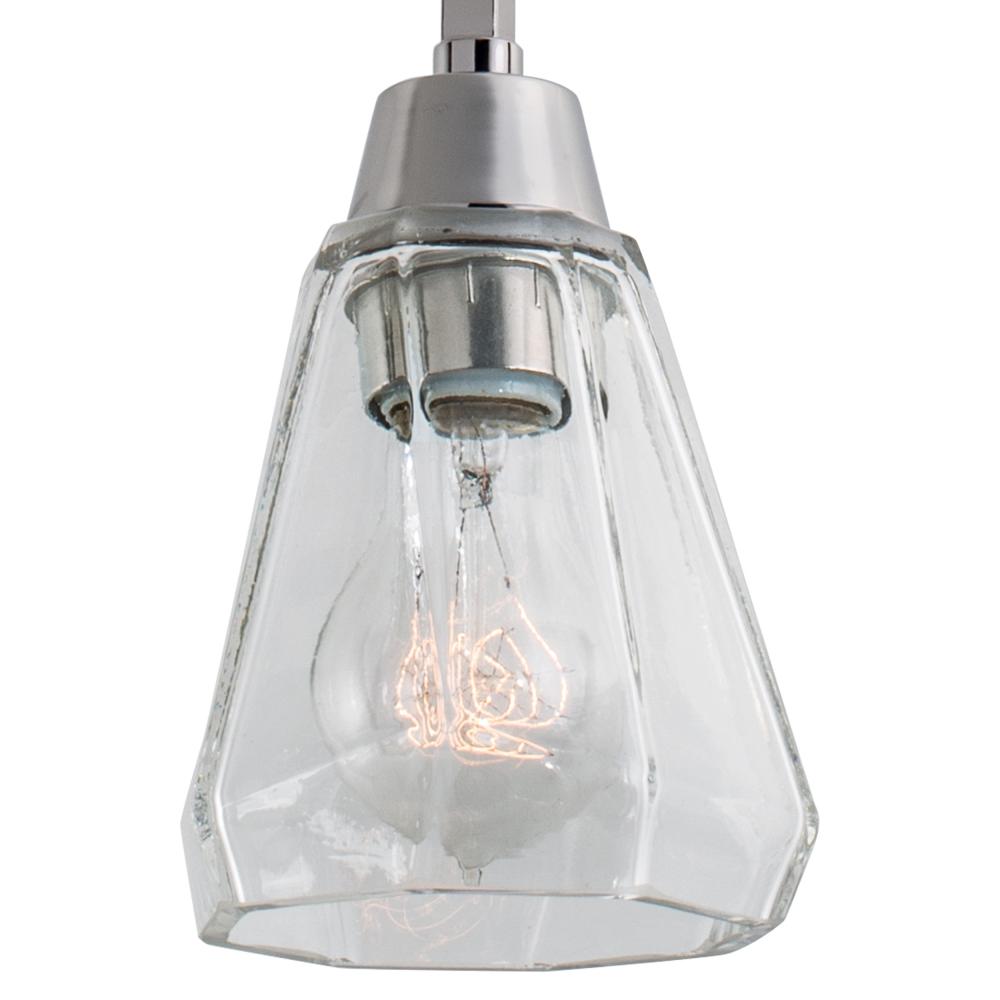 This single pendant drop with the substantial faceted glass diffuser exemplifies high quality. The textured canopy perfectly compliments the Arctic Bath Series.
