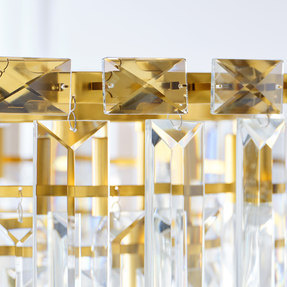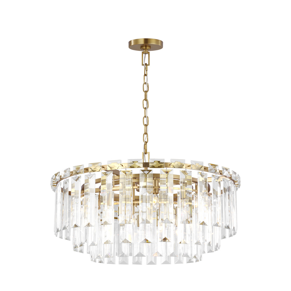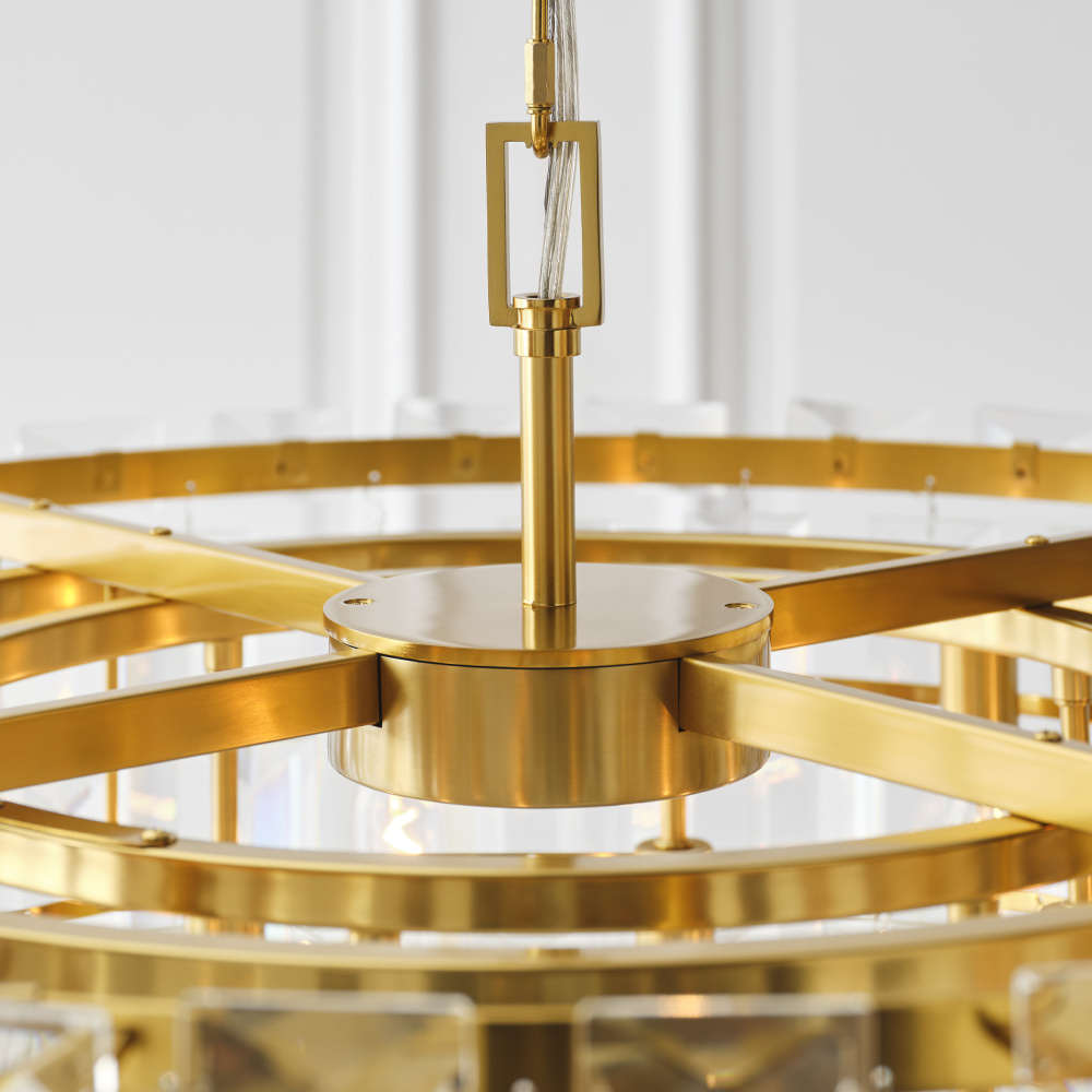 Inspired by the Art Deco style of 1920s Paris, the Arden series from C&M by Chapman and Myers captures the period's fascination with geometric forms. A stunning addition to an entryway, great room, or above a large dining table, the Arden tiered chandelier features panels of textured glass that hang in linear architectural tiers from a solid metal frame.