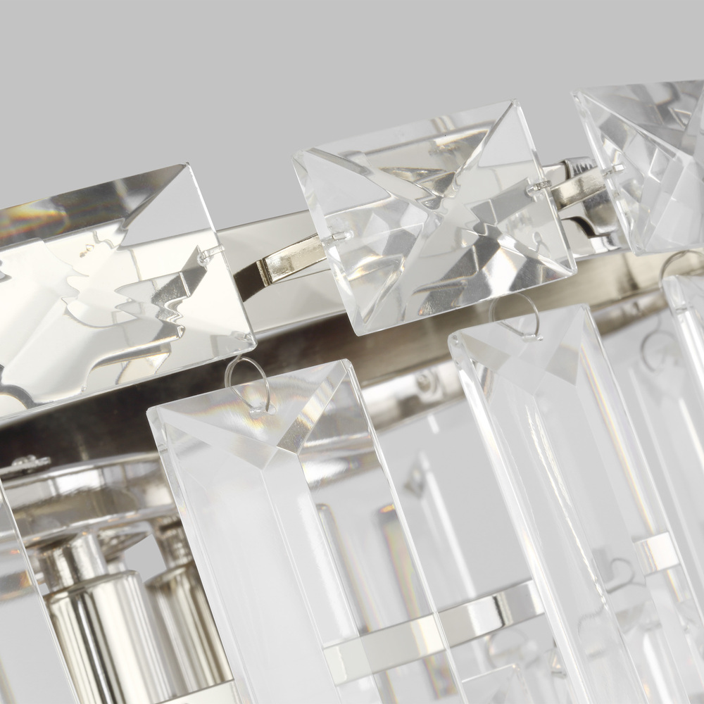Inspired by the Art Deco style of 1920s Paris, the Arden series from C&M by Chapman and Myers captures the period's fascination with geometric forms. A stunning addition to an entryway, great room, or above a large dining table, the Arden tiered chandelier features panels of textured glass that hang in linear architectural tiers from a solid metal frame.