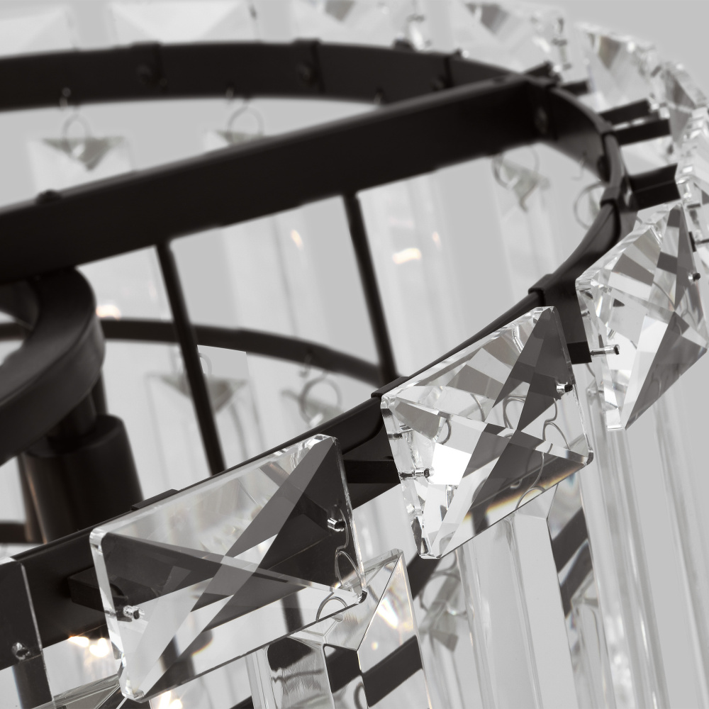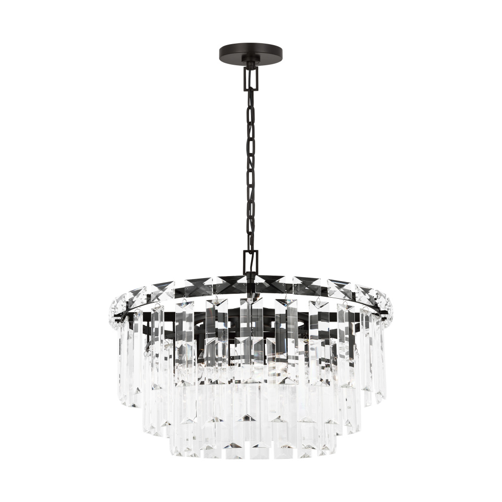 Inspired by the Art Deco style of 1920s Paris, the Arden series by Chapman and Myers captures the period's fascination with geometric forms. A stunning addition to an entryway, great room, or above a large dining table, the Arden tiered chandelier features panels of textured glass that hang in linear architectural tiers from a solid metal frame.