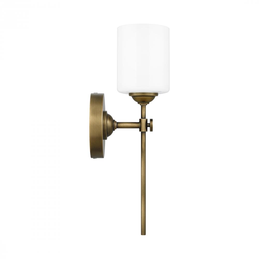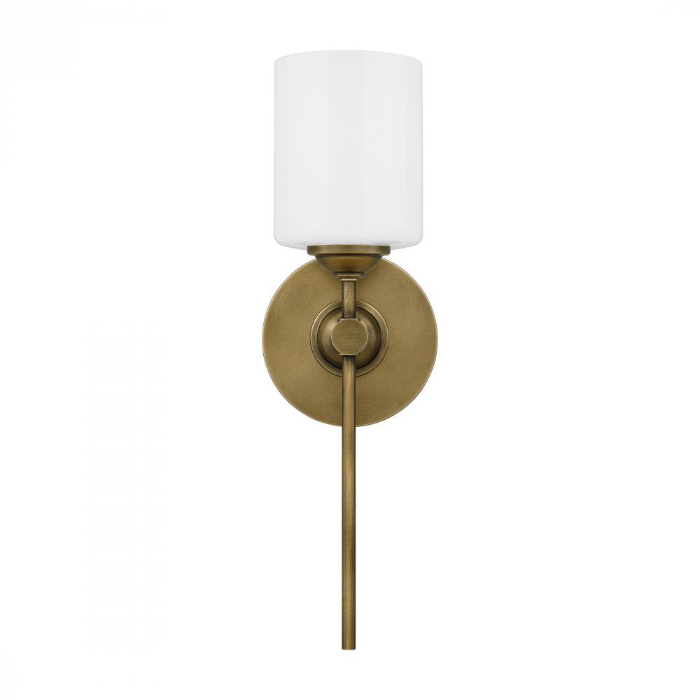 Shapely and eye-catching, the Aria sconce features a striking silhouette with a clear glass candle cup. In brushed nickel, it offers a crisp and classic vibe. Or choose the Weathered Brass colorway with an opal glass shade to warm up a powder room or entry