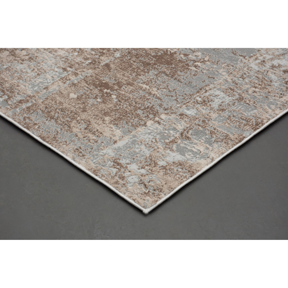 Smooth serene vibes wash over the contemporary living or bedroom space with this rug. Composed by power loom, it has a silky, inviting quality. Featuring grey and brown colouring, it proves that muted tones can make a bold impact.