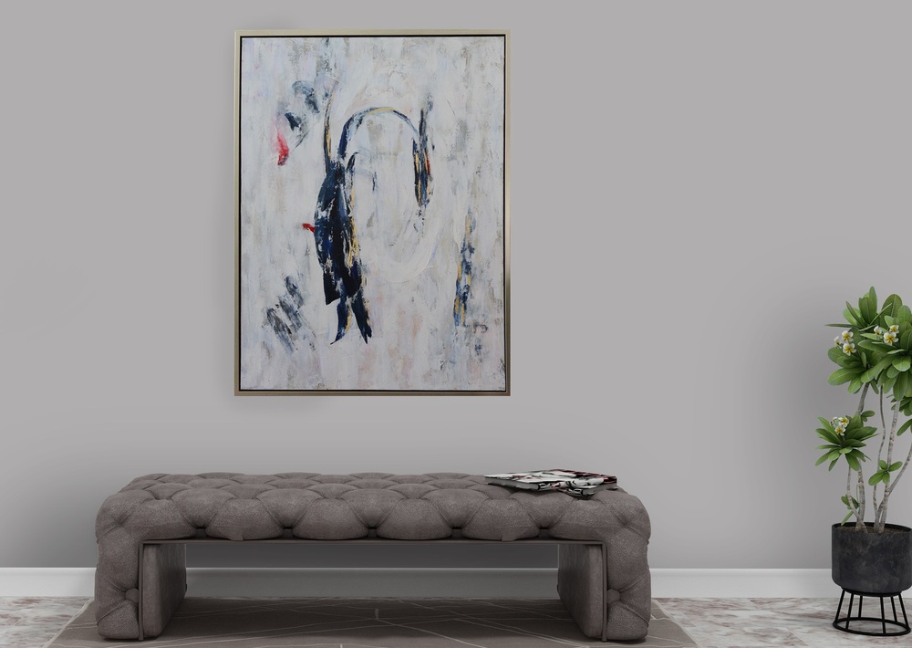 This abstract wall art is in white and black finish. It comes with a wood frame in silver color