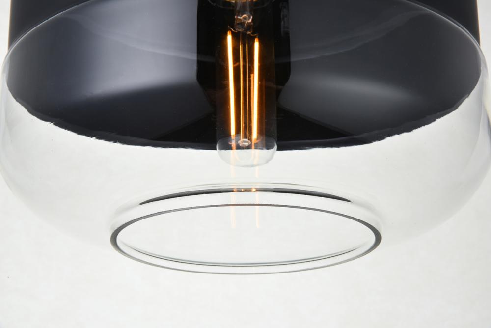 Feature 2: disk-shaped cylindrical glass shade proudly displays a tubular e26 filament bulb (not included)