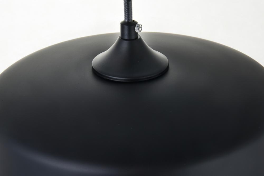 Feature 1: disk-shaped iron frame in a matte black finish with adjustable black hanging cord offers a minimum hanging height of 15 inches and a maximum hanging height of 68 inches