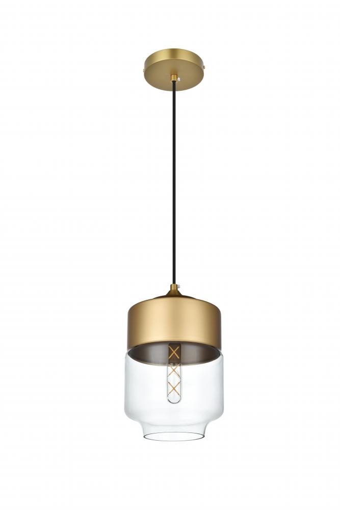 The perfect marriage of vintage charm and modern refinement, Ashwell pendant lamps blend well with decor from both Old World and New. A rounded iron frame in a satini gold finish comes with adjustable black hanging cord. The narrow cylindrical clear glass shade envelopes an E26 tubular filament bulb (not included) to complete the overall look. Ideal for a breakfast nook, kitchen, office, or studio.