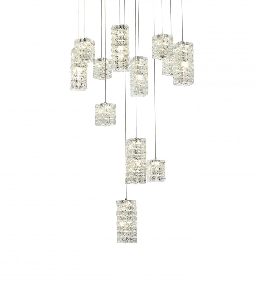 Features a unique rectangular shape with clear crystal stacks that resemble ice, creating a visually stunning and unique lighting fixture.