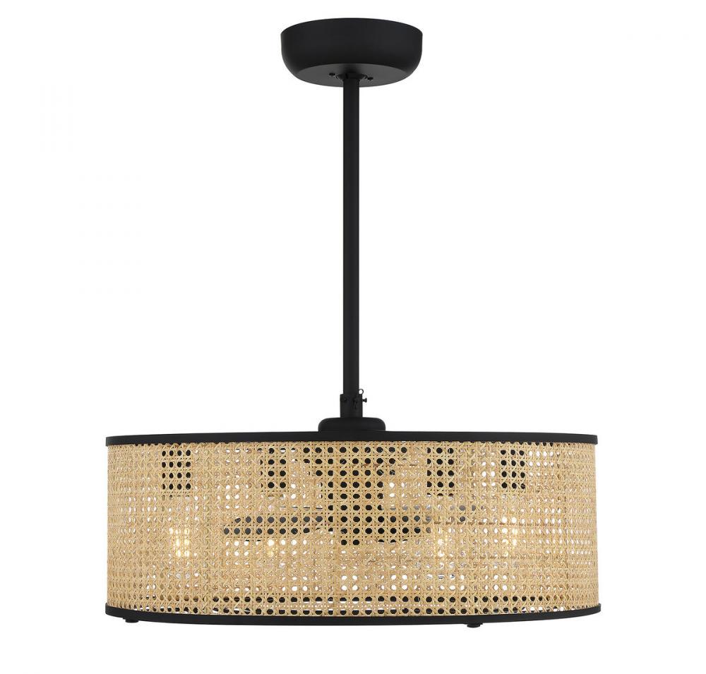 Bring in a tropical breeze with the Savoy House Astoria Fan D'Lier! With its natural cane shade and matte black finish, it’s excellent for adding casual vibes to the home. Let the organic look of Astoria transport you to lush surroundings. Astoria is 12.88" in height and 25" in width. It uses four standard size bulbs of up to 8 watts per bulb. For indoor use only. Comes with 80" of cord.