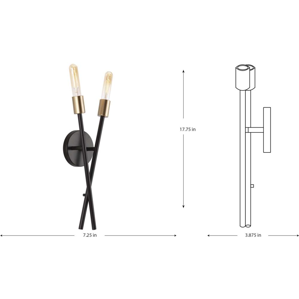 An iconic style design that adds dynamic flair to any room;Versatile space-aged inspired pieces that can be incorporated into a variety of interiors;Antique Bronze finish;Wall bracket uses two 60W medium base bulbs (sold separately);Ideal for hallways, foy