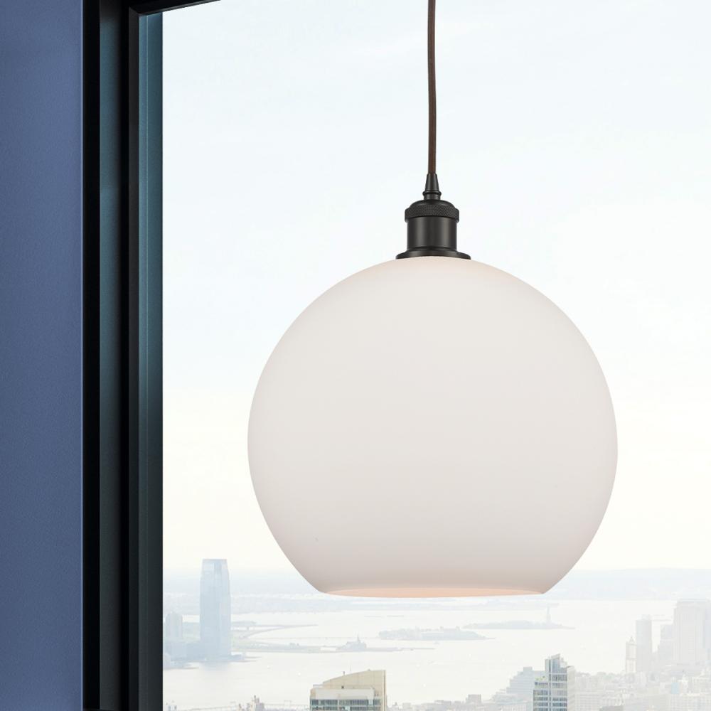 Athens - 1 Light - 12 inch - Oil Rubbed Bronze - Matte White Shade - Cord hung - Mini Pendant