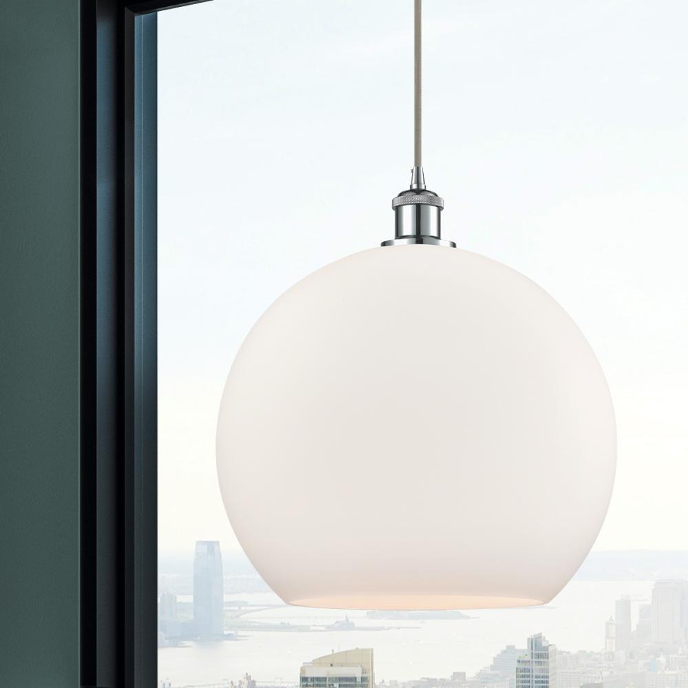 Athens - 1 Light - 14 inch - Polished Chrome - Matte White Shade - Cord hung - Pendant