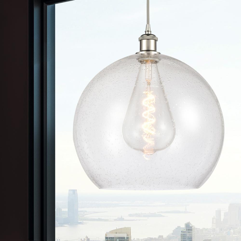 Athens - 1 Light - 14 inch - Polished Nickel - Seedy Shade - Cord hung - Pendant