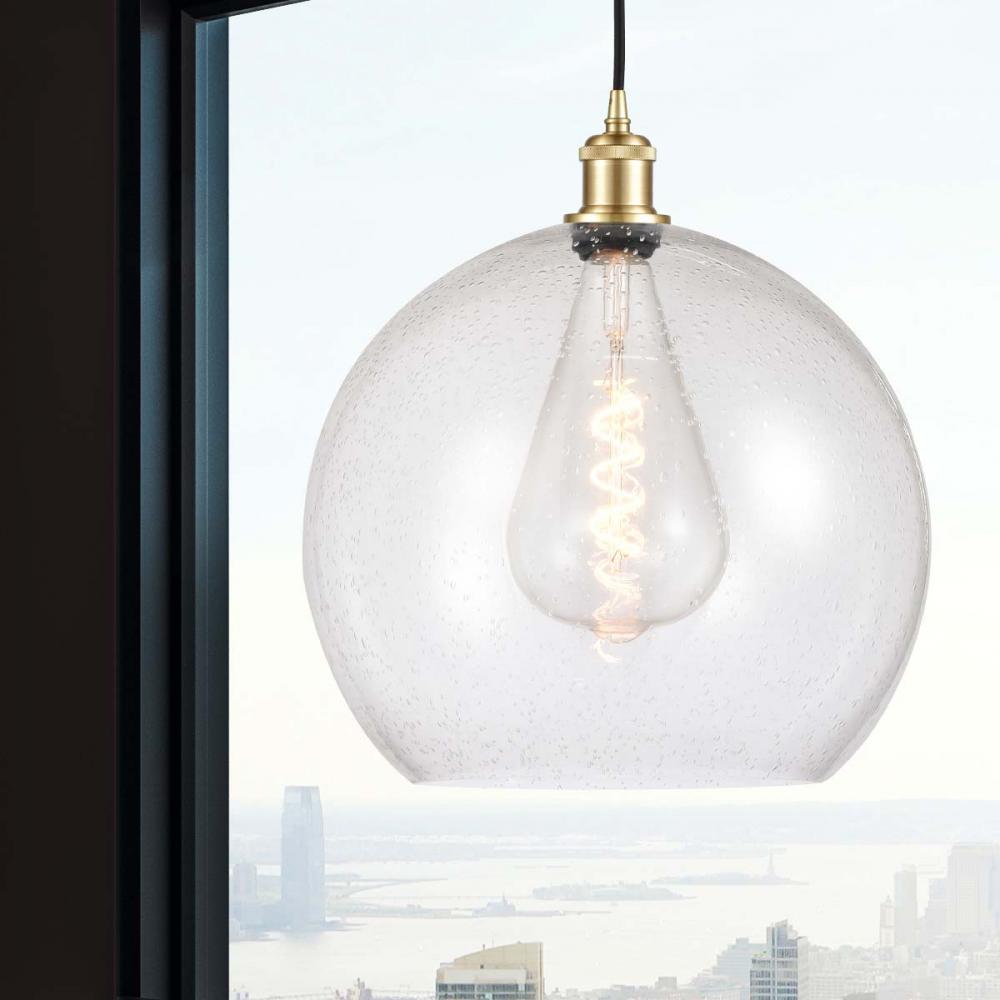 Athens - 1 Light - 14 inch - Satin Gold - Seedy Shade - Cord hung - Pendant