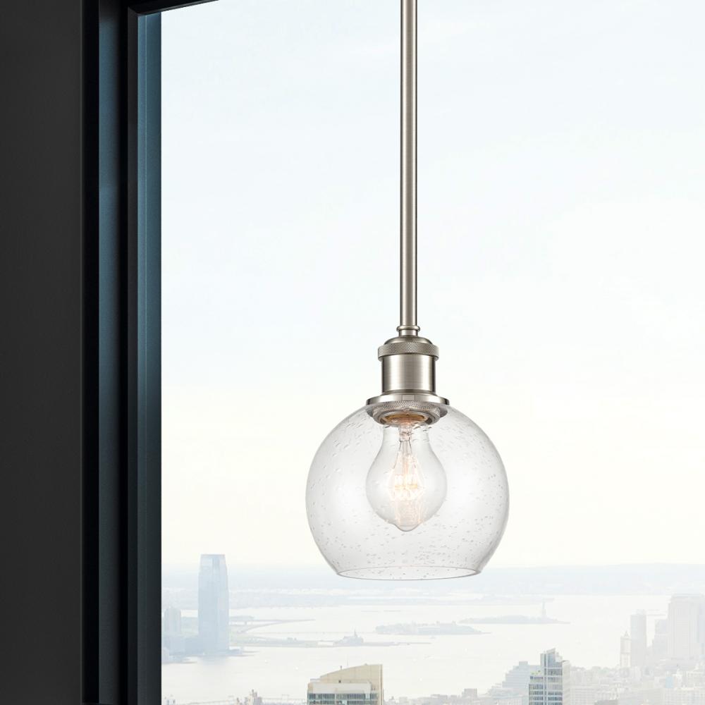 Athens - 1 Light - 6 inch - Brushed Satin Nickel - Seedy Shade - Mini Pendant