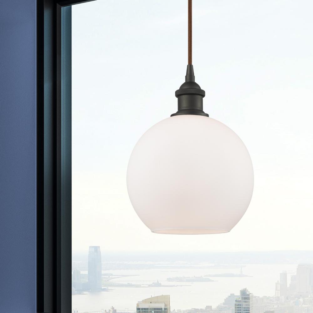 Athens - 1 Light - 8 inch - Oil Rubbed Bronze - Matte White Shade - Cord hung - Mini Pendant