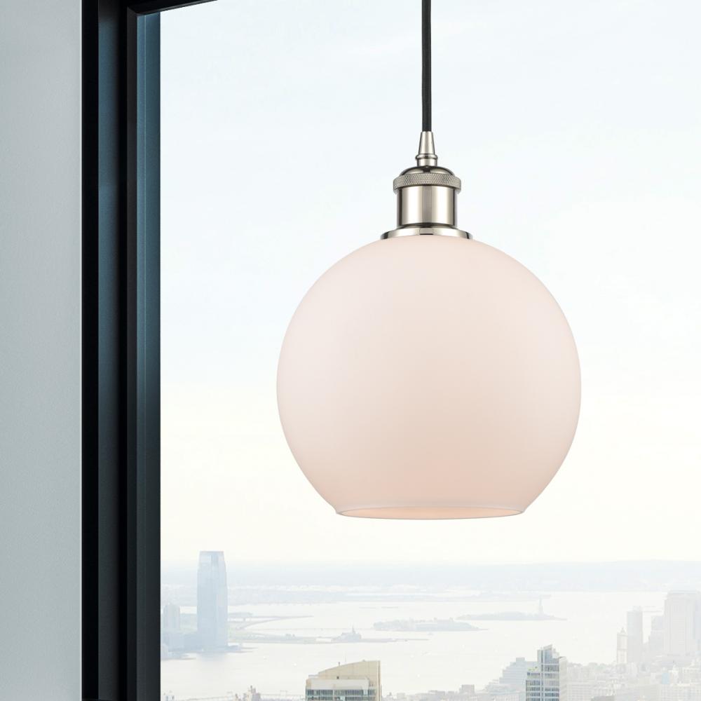 Athens - 1 Light - 8 inch - Polished Nickel - Matte White Shade - Cord hung - Mini Pendant