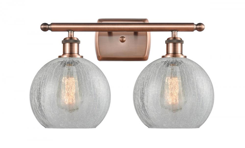 Athens - 2 Light - 18 inch - Antique Copper - Clear Crackle Shade - Bath Vanity Light