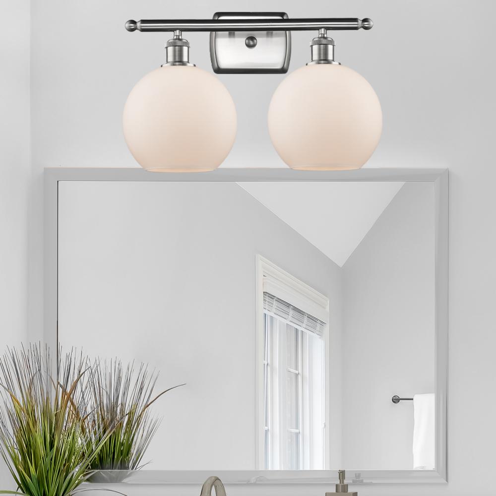 Athens - 2 Light - 18 inch - Brushed Satin Nickel - Matte White Shade - Bath Vanity Light