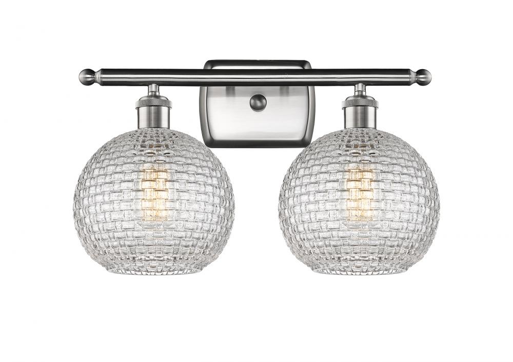 Athens - 2 Light - 18 inch - Brushed Satin Nickel - Clear Basket Weave Shade - Bath Vanity Light