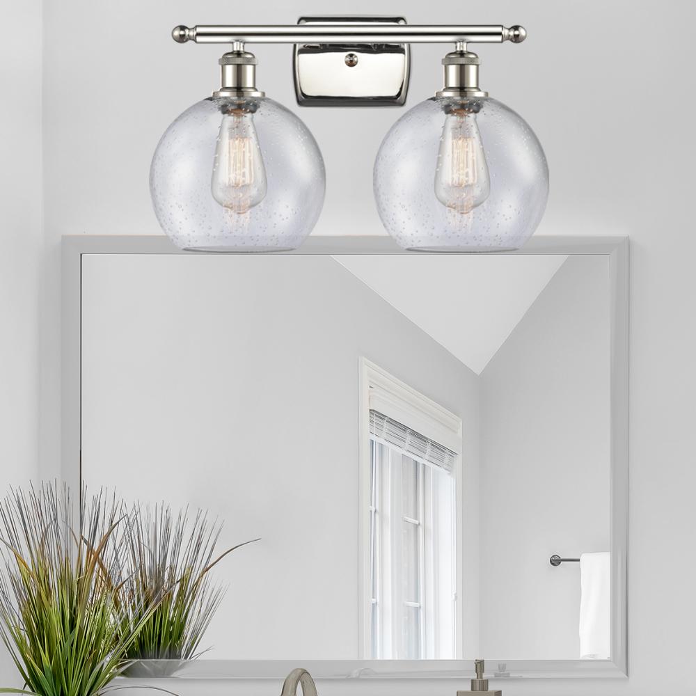 Athens - 2 Light - 18 inch - Polished Nickel - Seedy Shade - Bath Vanity Light
