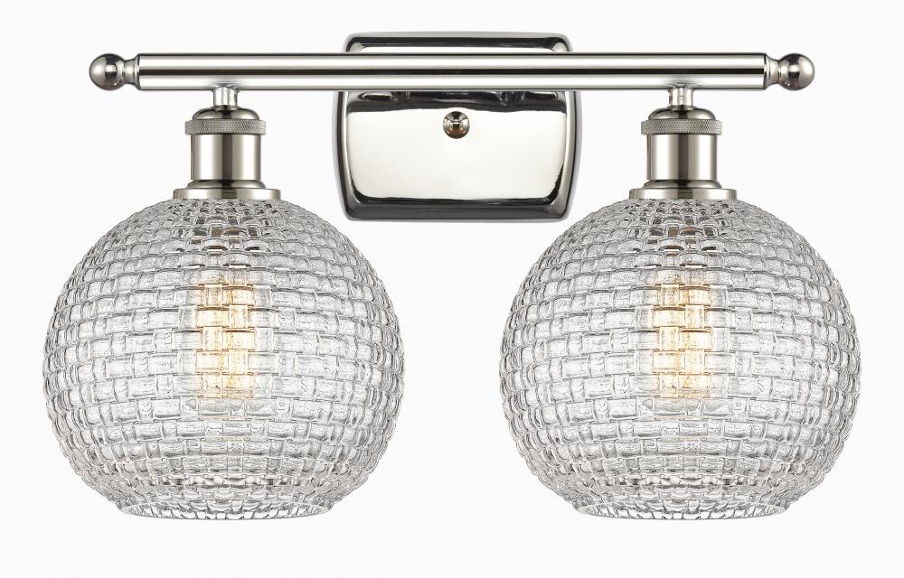 Athens - 2 Light - 18 inch - Polished Nickel - Clear Basket Weave Shade - Bath Vanity Light