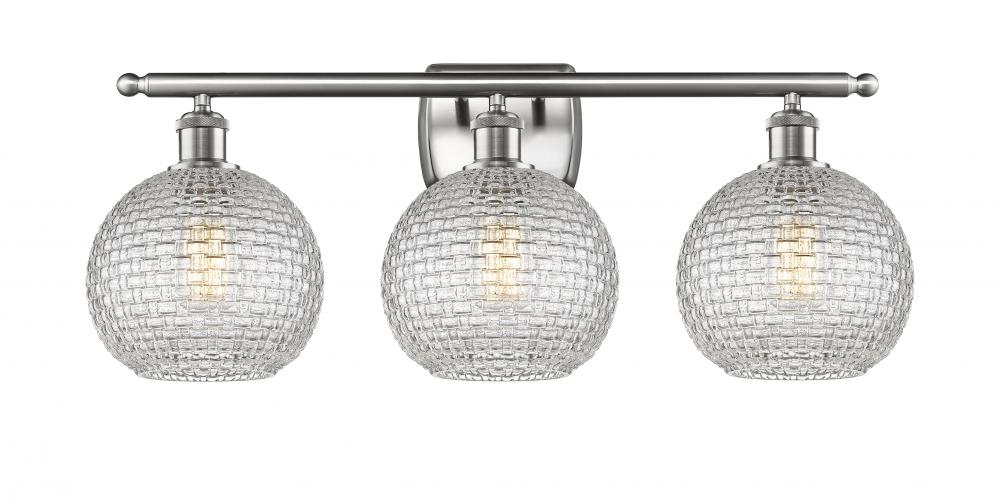 Athens - 3 Light - 28 inch - Brushed Satin Nickel - Clear Basket Weave Shade - Bath Vanity Light
