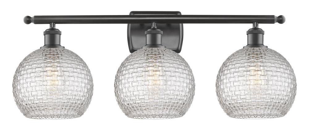 Athens - 3 Light - 28 inch - Oil Rubbed Bronze - Clear Basket Weave Shade - Bath Vanity Light