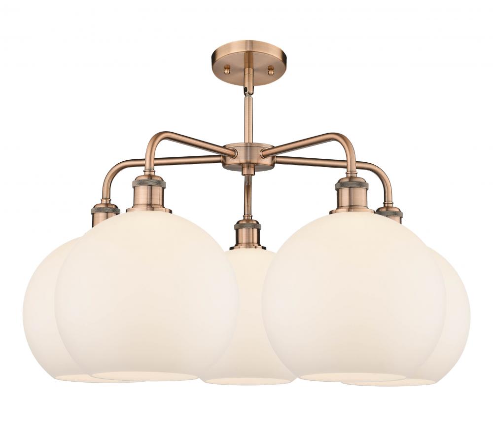Athens - 5 Light - 28 inch - Antique Copper - Matte White Shade - Chandelier