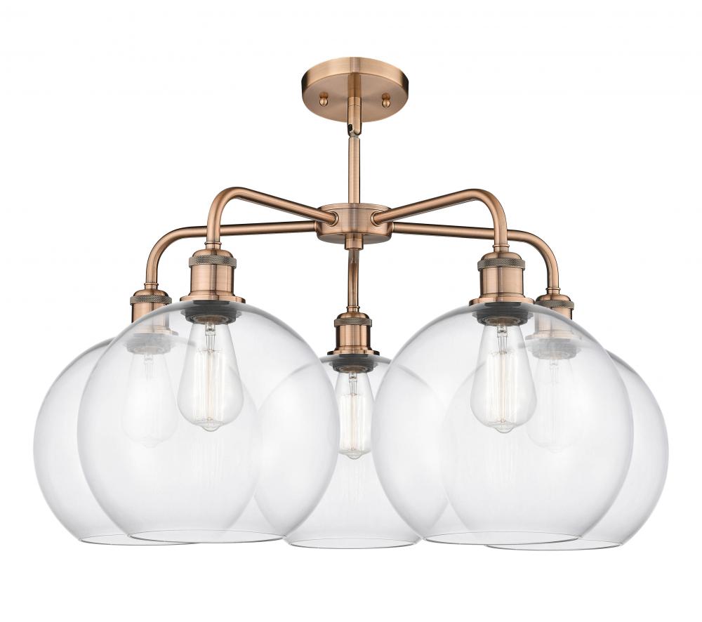 Athens - 5 Light - 28 inch - Antique Copper - Clear Shade - Chandelier