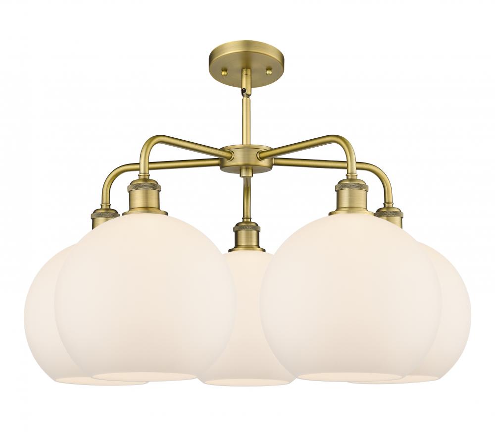 Athens - 5 Light - 28 inch - Brushed Brass - Matte White Shade - Chandelier