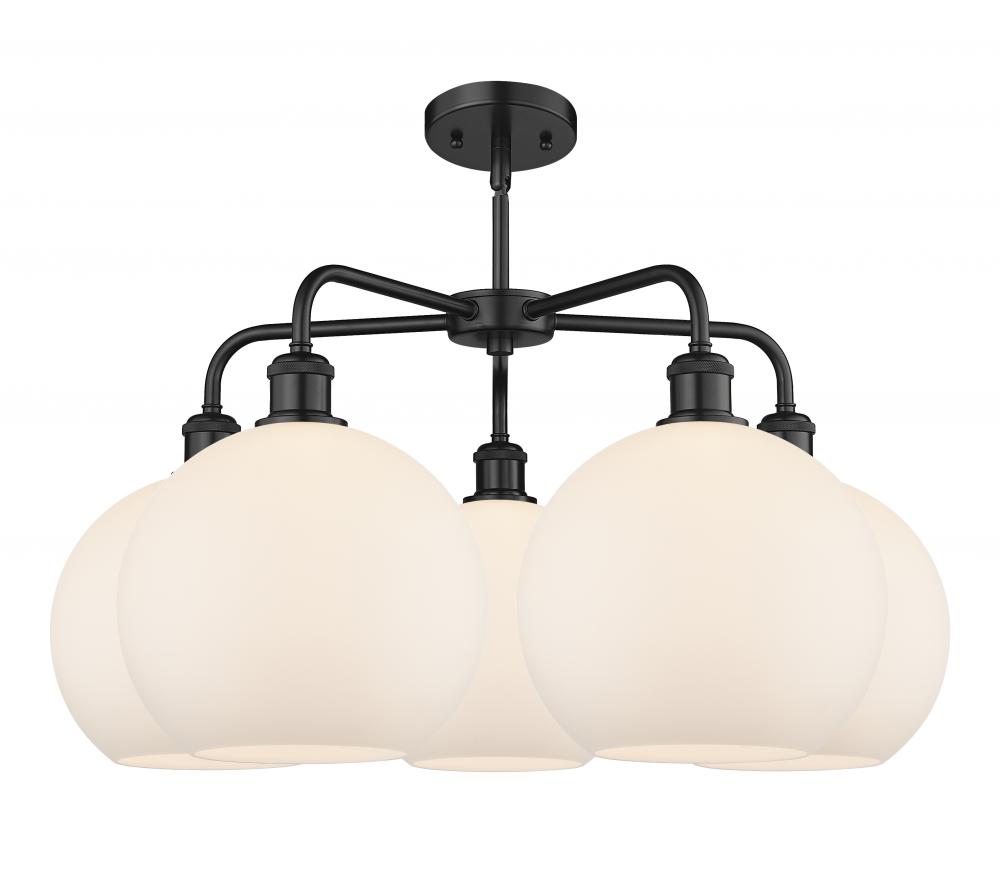 Athens - 5 Light - 28 inch - Matte Black - Matte White Shade - Chandelier