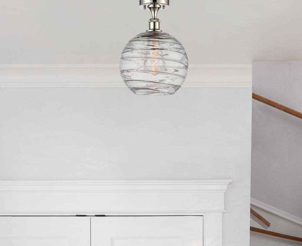Athens Deco Swirl - 1 Light - 10 inch - Polished Nickel - Clear Deco Swirl Shade - Semi-Flush Mount