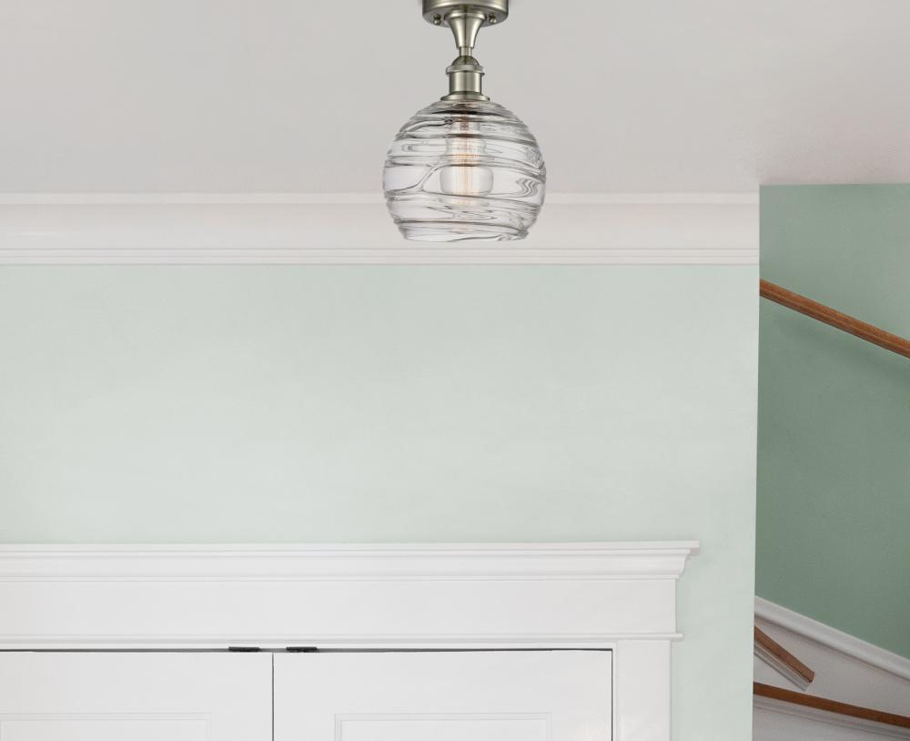 Athens Deco Swirl - 1 Light - 8 inch - Brushed Satin Nickel - Clear Deco Swirl Shade - Semi-Flush Mount