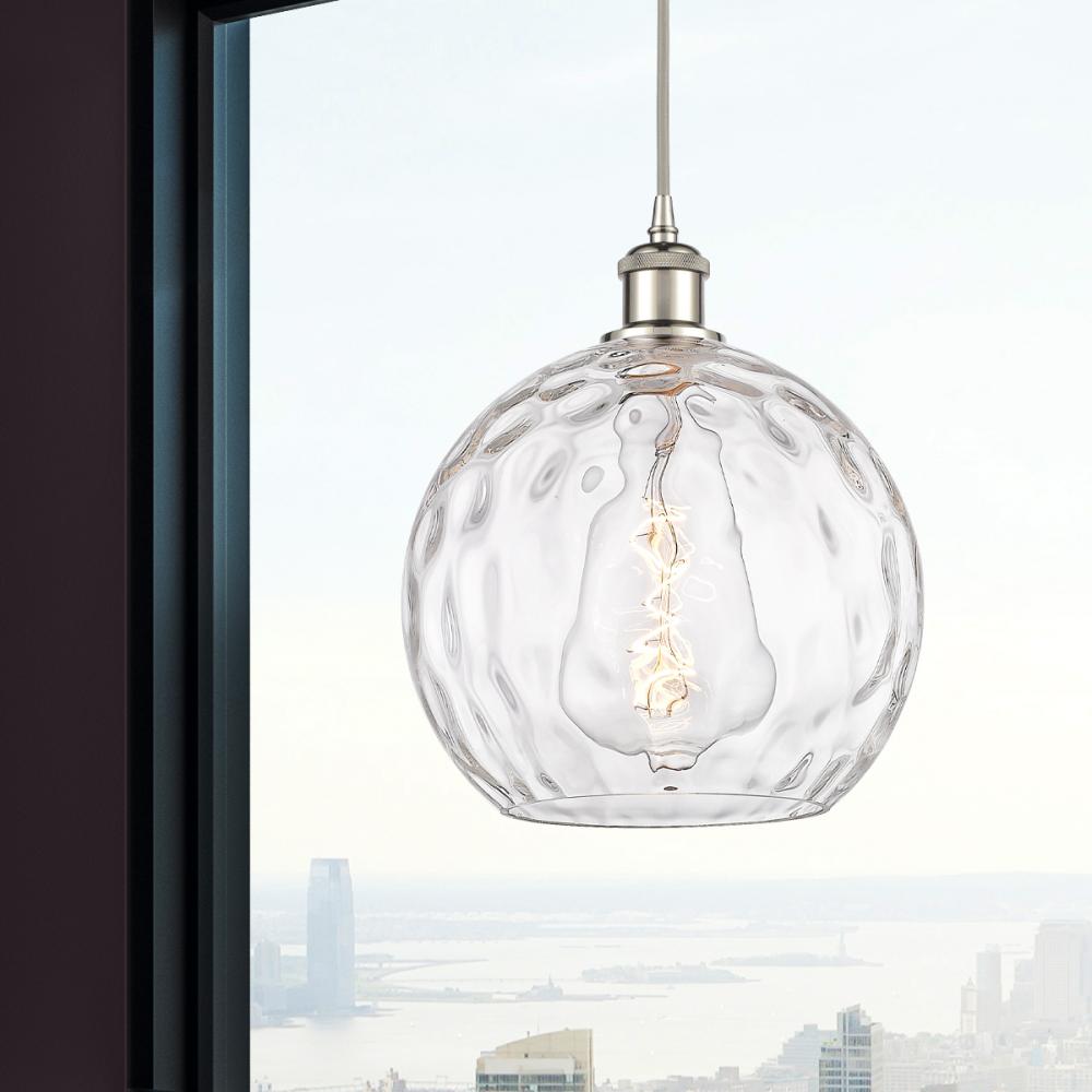 Athens Water Glass - 1 Light - 10 inch - Polished Nickel - Clear Water Glass Shade - Cord hung - Mini Pendant