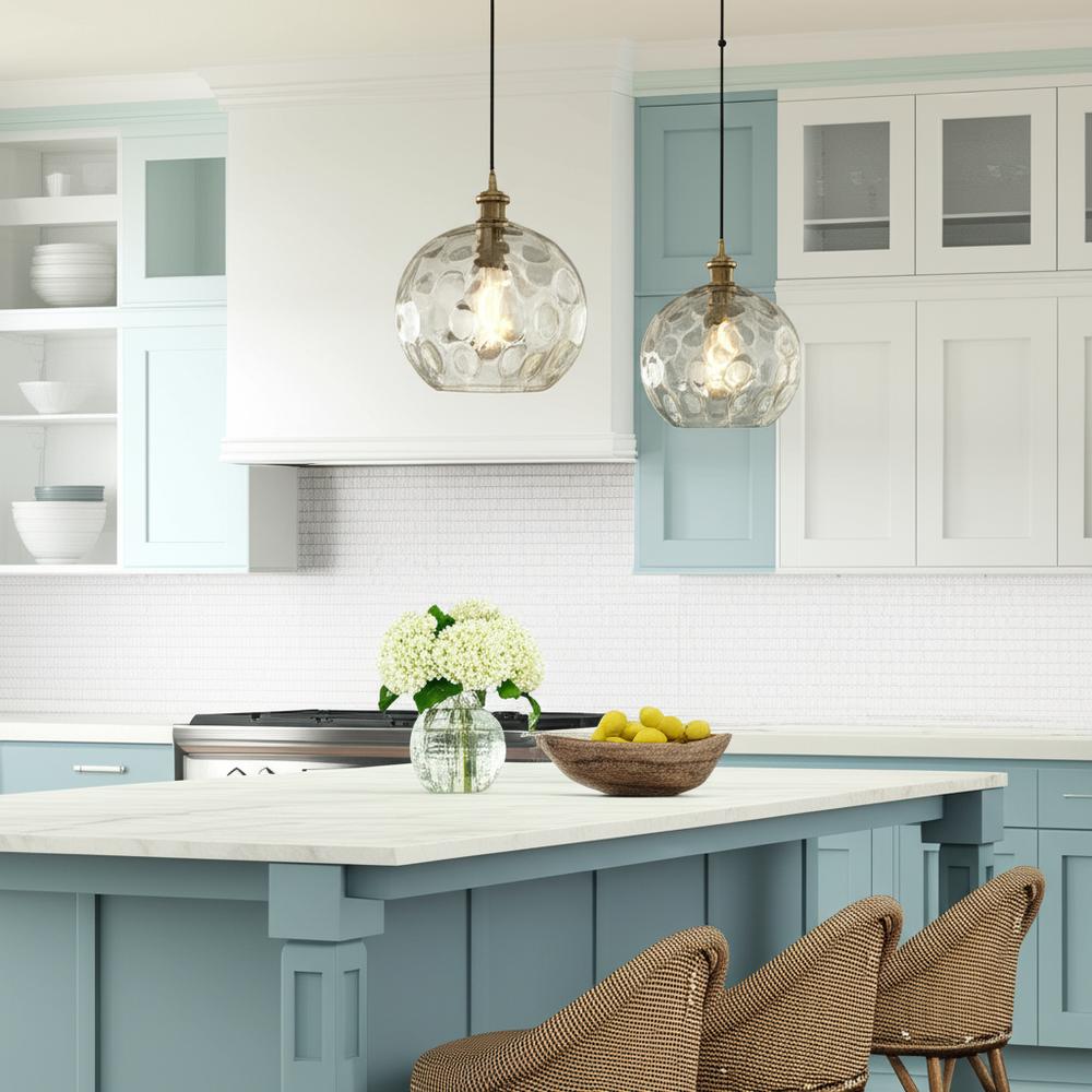 Athens Water Glass - 1 Light - 13 inch - Brushed Brass - Cord hung - Pendant