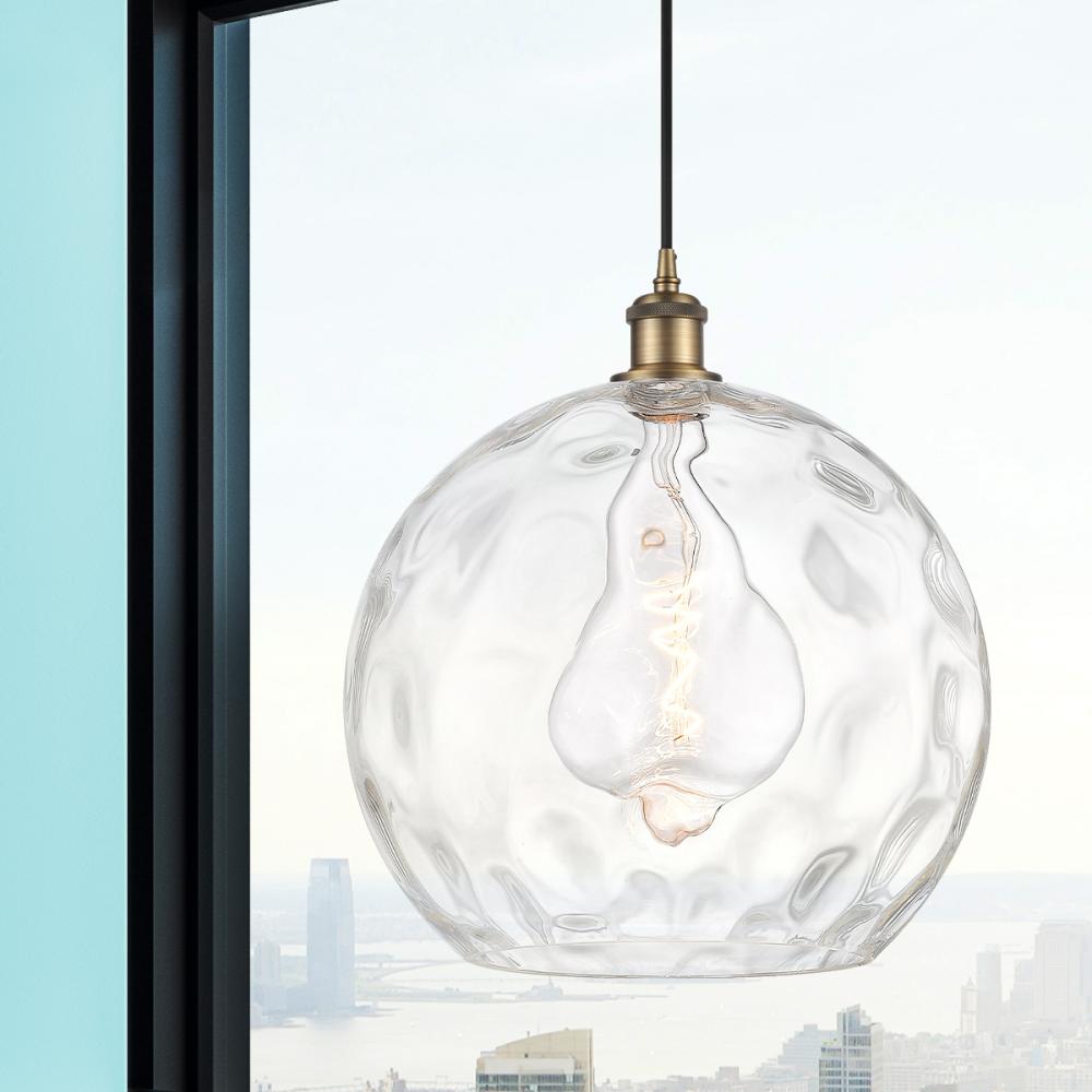 Athens Water Glass - 1 Light - 13 inch - Brushed Brass - Clear Water Glass Shade - Cord hung - Pendant
