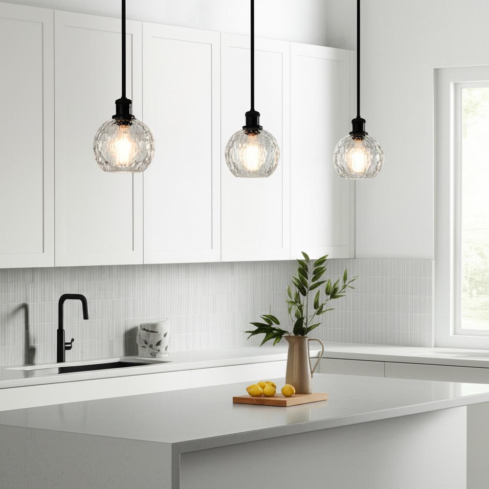 Athens Water Glass - 1 Light - 6 inch - Matte Black - Clear Water Glass Shade - Mini Pendant