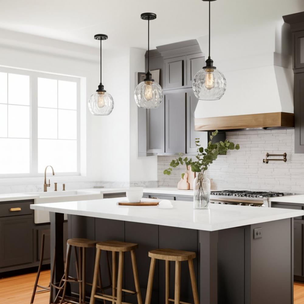 Athens Water Glass - 1 Light - 8 inch - Matte Black - Clear Water Glass Shade - Cord hung - Mini Pendant