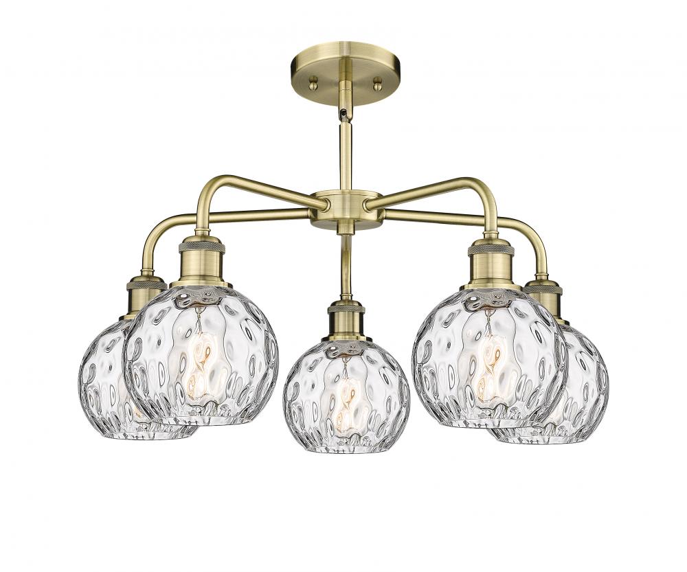 Athens Water Glass - 5 Light - 24 inch - Antique Brass - Clear Water Glass Shade - Chandelier