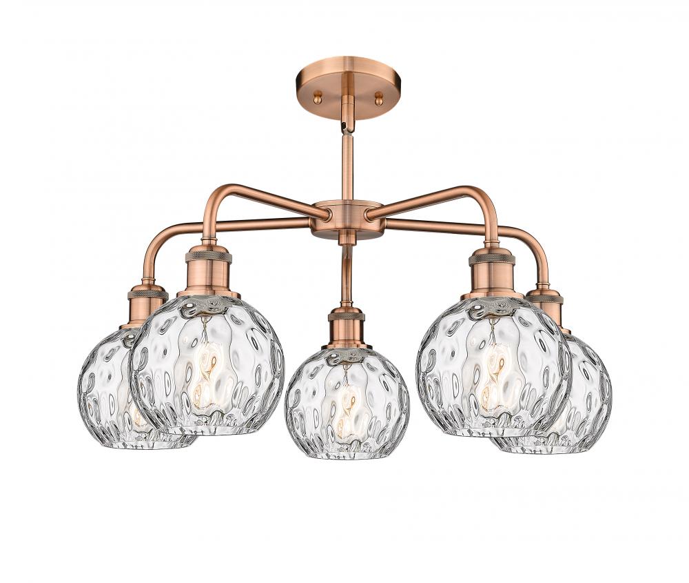 Athens Water Glass - 5 Light - 24 inch - Antique Copper - Clear Water Glass Shade - Chandelier