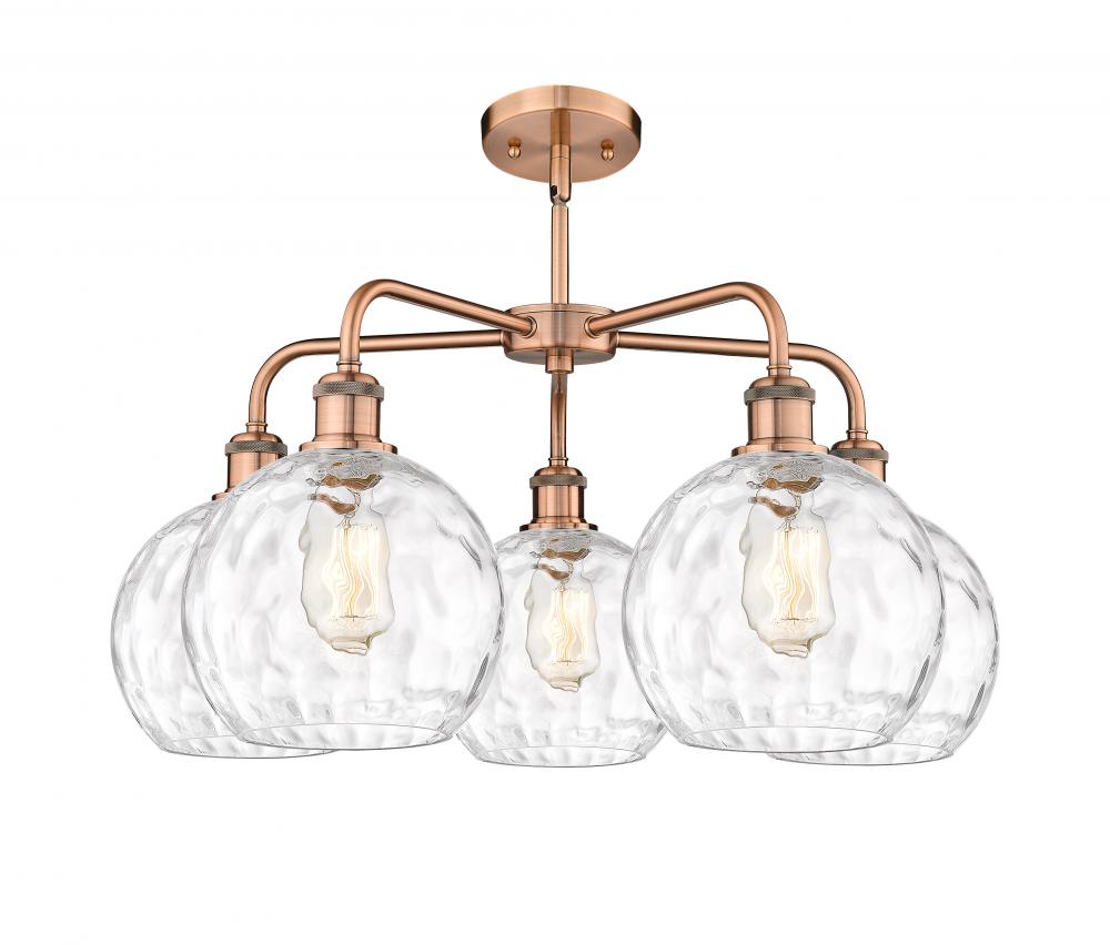 Athens Water Glass - 5 Light - 26 inch - Antique Copper - Clear Water Glass Shade - Chandelier