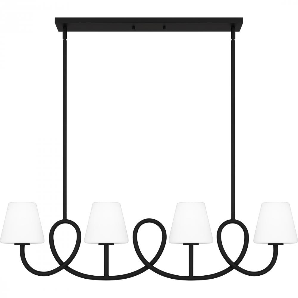Matte black and opal etched glass make a perfect modern pairing in the Atkins collection. This trendy lighting collection elevates a classic silhouette with its unique, curving lines. Choose from a linear chandelier or classic shaded chandelier to add easy