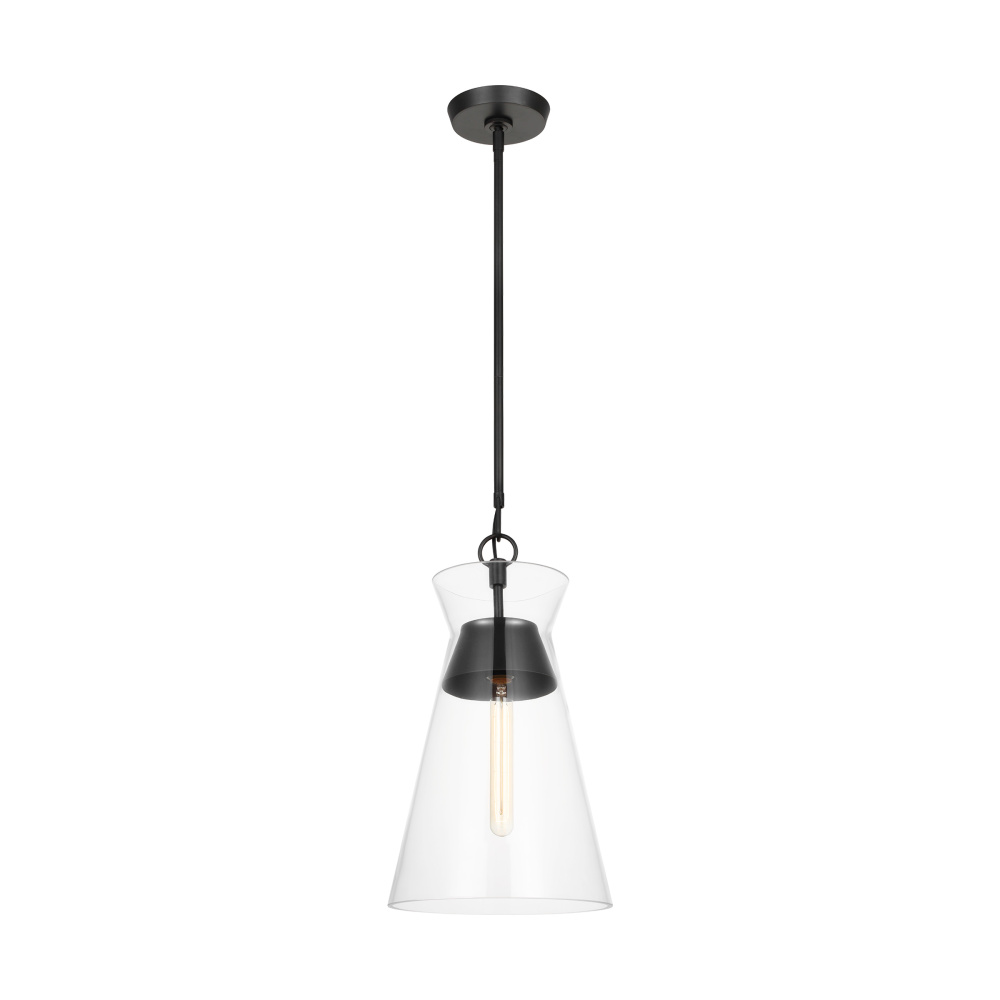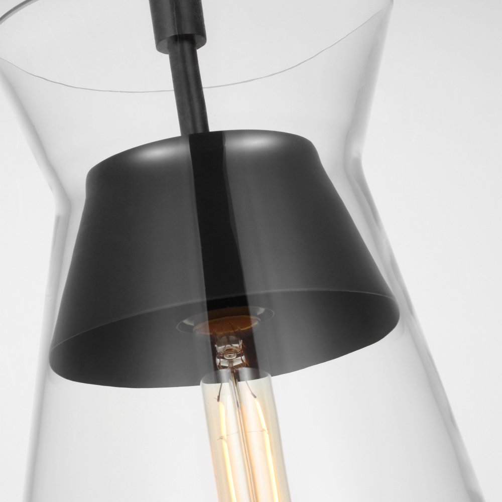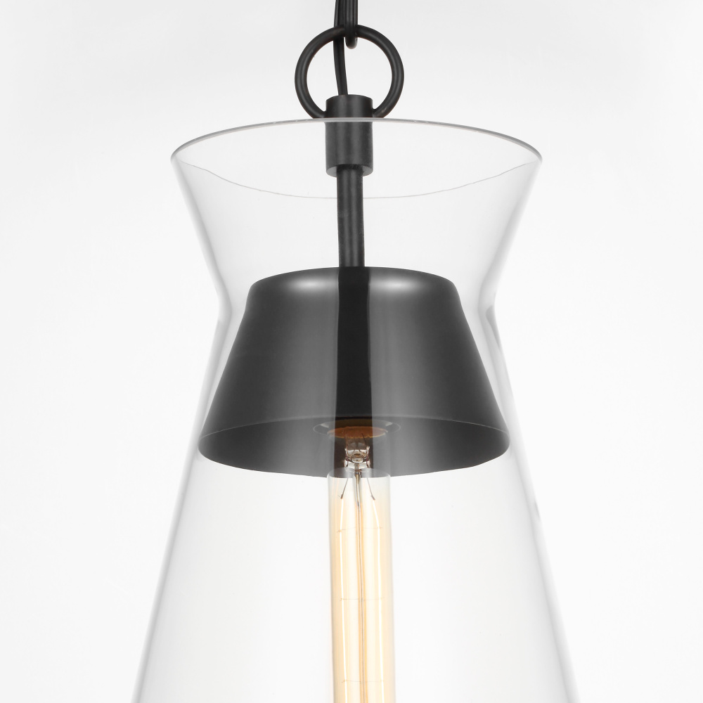 Designed by Chapman & Myers, the Atlantic series features globe and conical Clear Glass pendants paired with hardware in rich finishes; these work well singularly or in multiples to elevate any room. The lamping suspends from the center and appears floating within the Clear Glass shade.