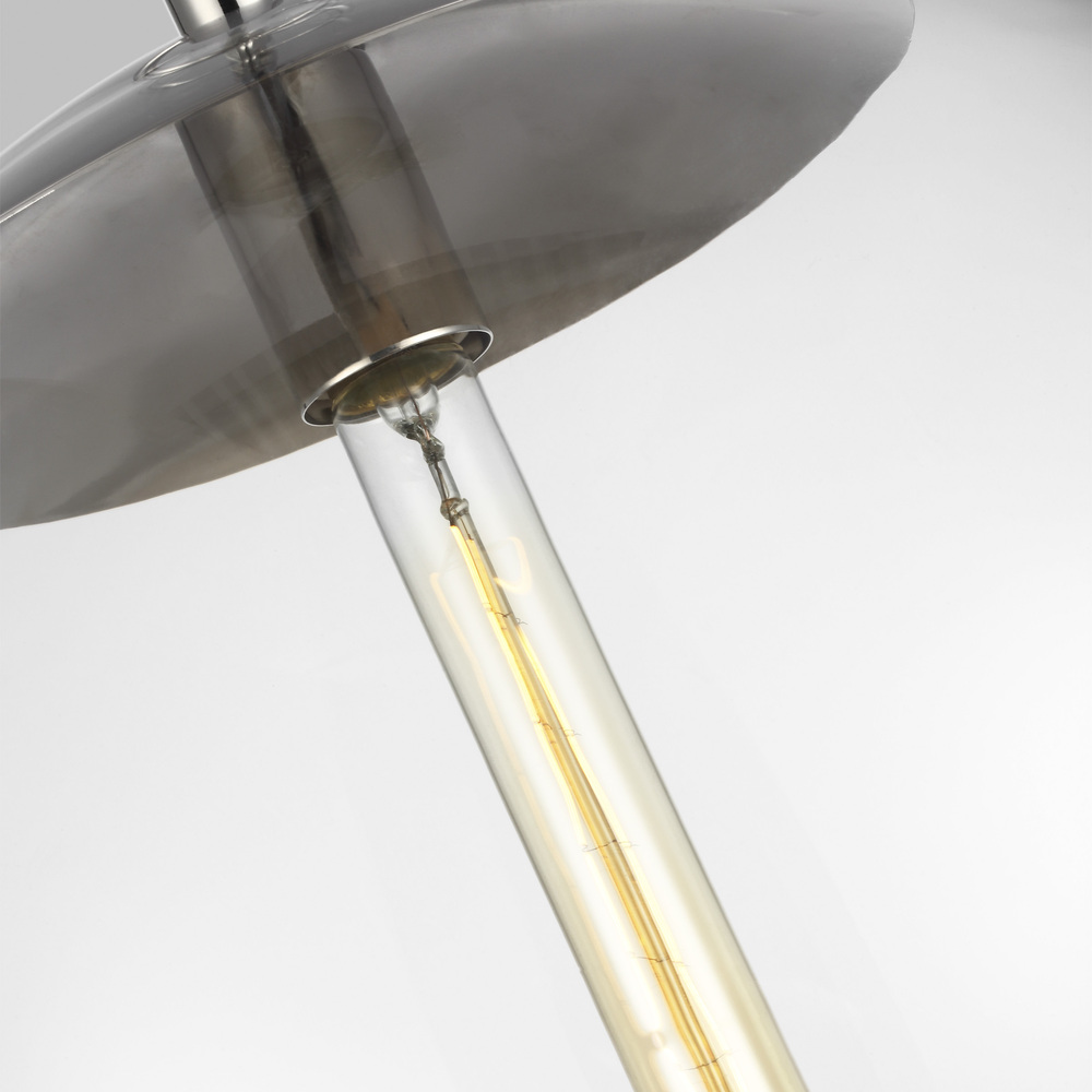 The minimalistic design replaces a traditional shade fitter with a simple metal collar for each glass profile to rest on.