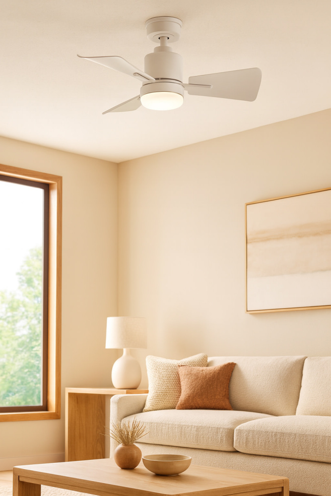 Part of the Regency Series, Atom's compact modern profile complements functionality with classic finishes to perfectly accentuate smaller spaces. Its damp-rated design is suitable for both interior and covered outdoor areas. Dimmable Integrated LEDs emit warm, even light, creating a comfortable atmosphere. Atom mounts directly to its canopy or with the included downrod for dual mount capability. This will result in an overall fan height of 10" and a ceiling-to-blade height of 5 3/4