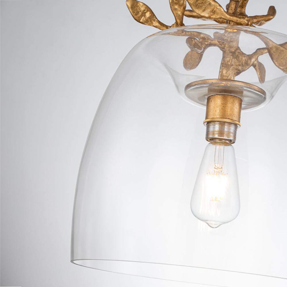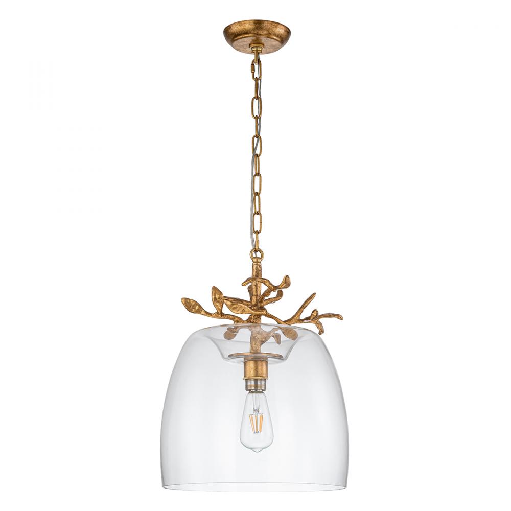 Audubon Park 14" Pendant offers a subtly rounded glass that is topped by gilded branches providing a beautiful, organic element to the space it occupies.