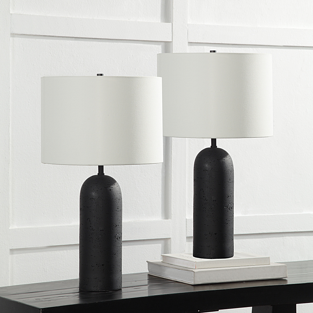 Augusta 25" Tall Black Resin Table Lamp with Drum Linen Shade (Set of 2)