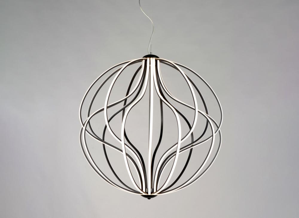 A sculpture of durable steel and aluminum channel is gracefully formed with offsetting waves of motion. This collection is fully dimmable for a great combination of form and function.