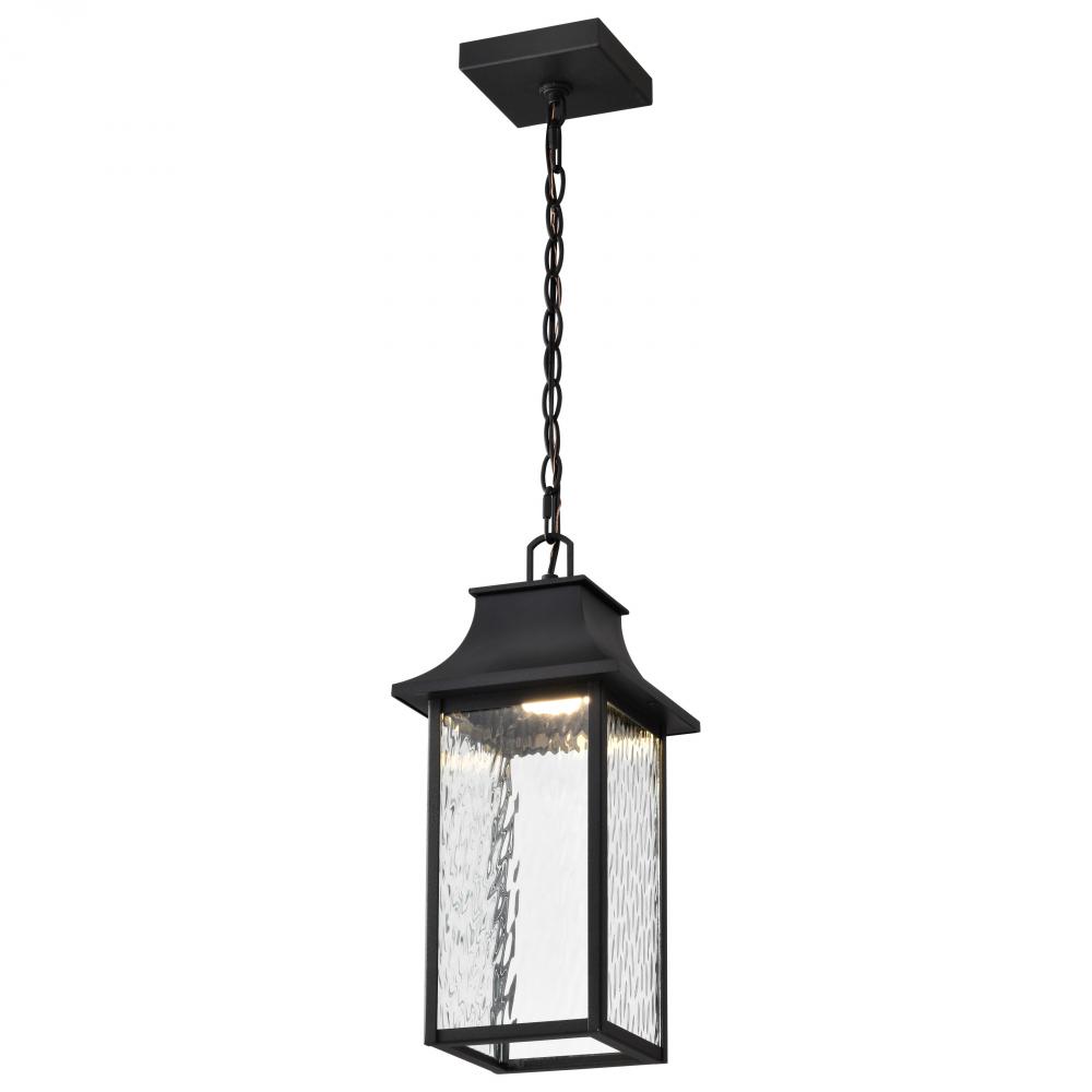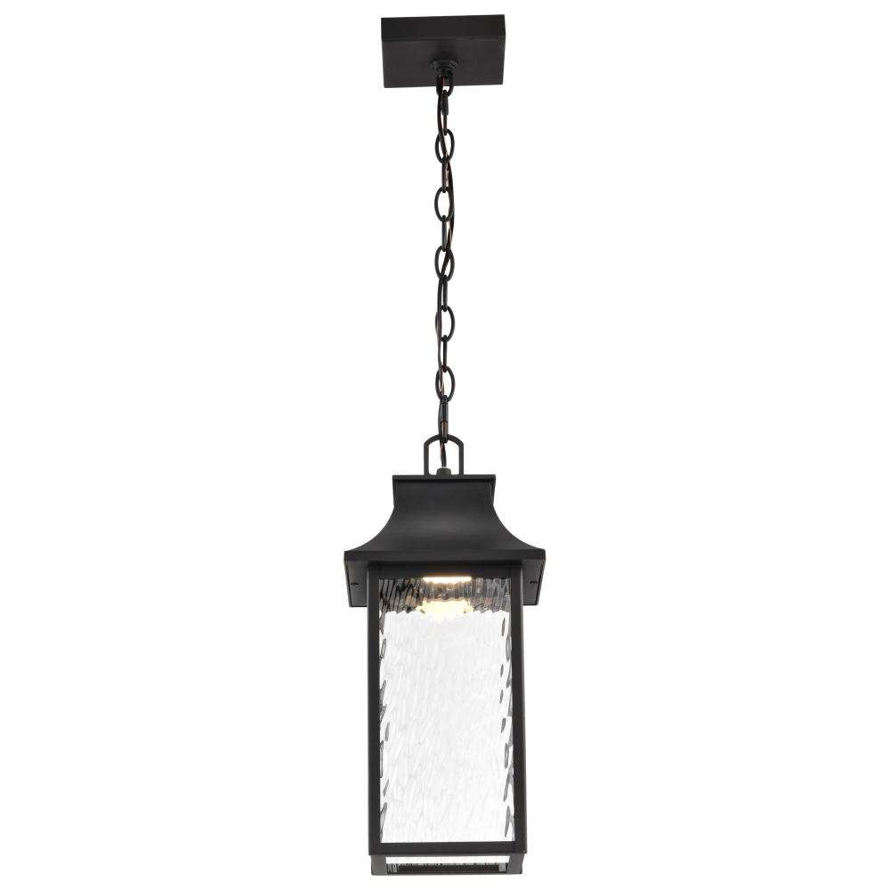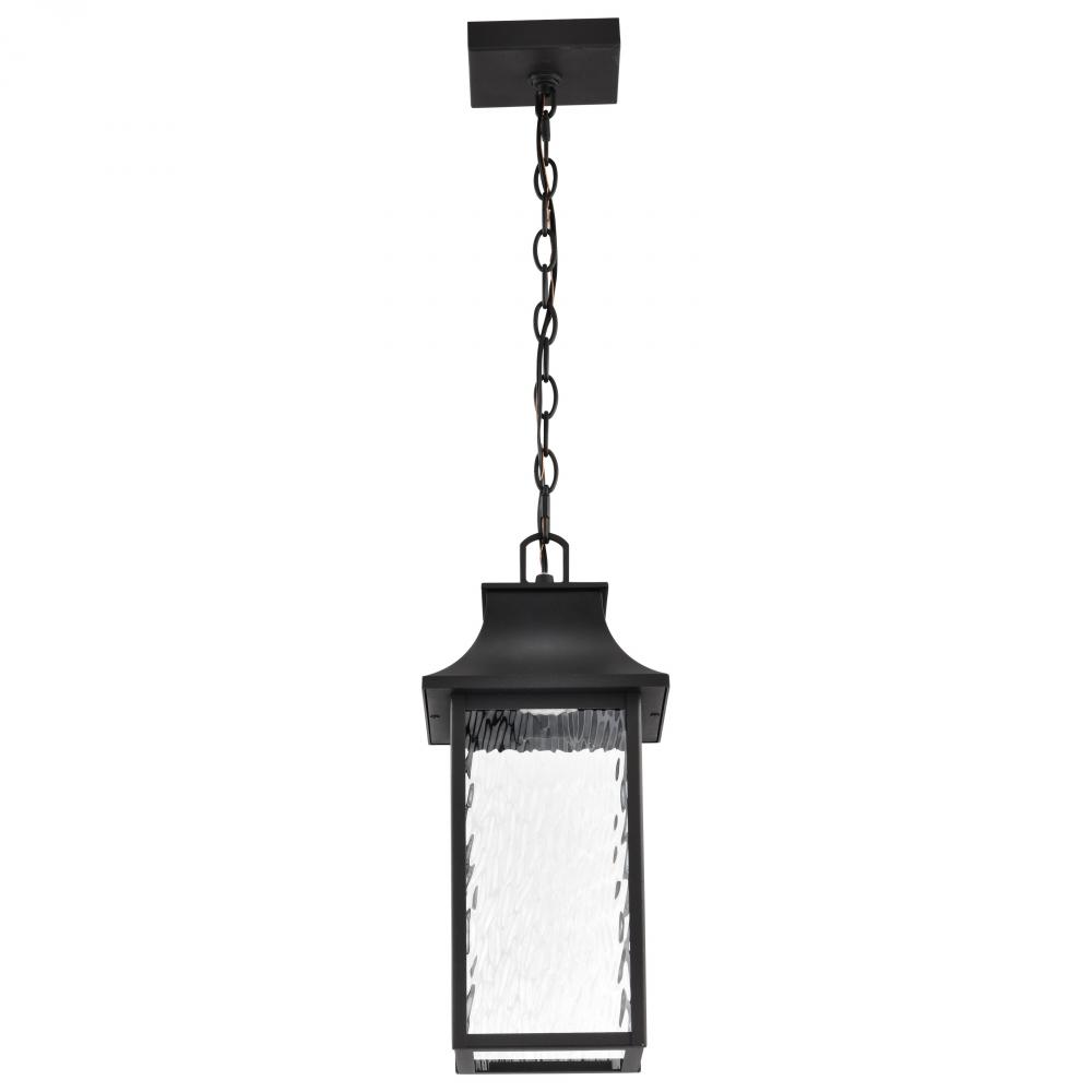 Austen LED 7.75-inch outdoor hanging lantern finished in Smart Starfish enabled with matte black clear water glass, featuring Color and White tunable CCT Selectable